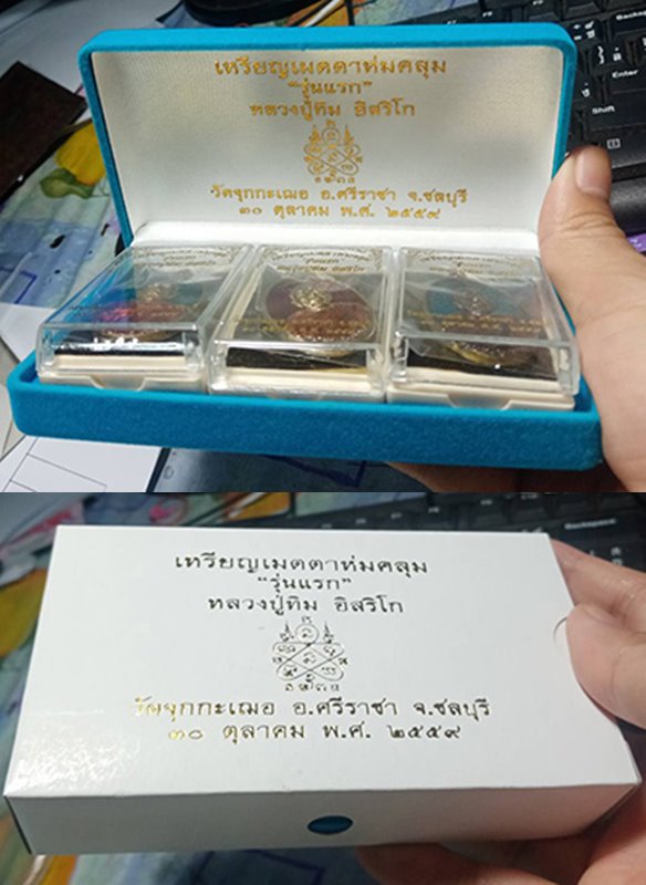 359......วัดใจ.....(จอง 1599 สร้าง 999 ชุด )......เหรียญเมตตาหลวงปู่ทิมห่มคลุม(รุ่นแรก) วัดจุกกะเฌอ ชุดกรรมการใหญ่ 3 เหรียญ ปี 2559 เนื้อชนวนพระกริ่งปรโมลงยา ( เลข 977 ทุกเหรียญ ) กล่องเดิม ซืลเดิม