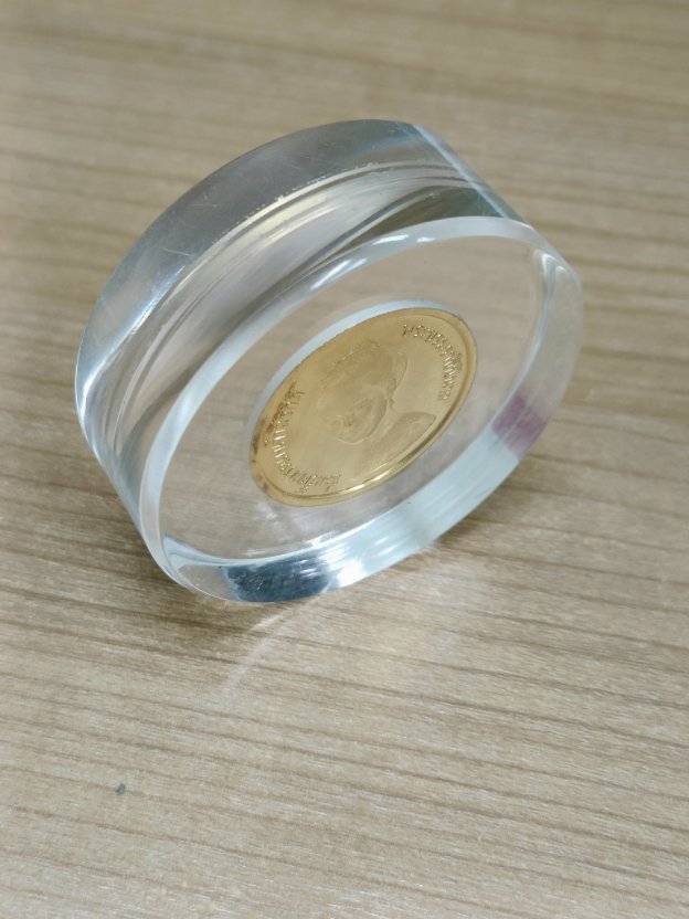 เหรียญที่ระลึกสมทบทุนสร้างศูนย์การแพทย์สิริกิติ์ โรงพยาบาลรามาธิบดี ซึ่งจัดสร้างขึ้นในปี พ.ศ. 2534 เหรียญอยู่ในอะครีลิค |