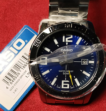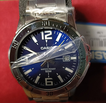 คาสิโอ มือหนึ่ง รุ่น mtp vd01 ขนาด 5.5 มิลลิเมตร ไซด์ใหญ่เต็มข้อ ทนแรงกระแทก แรงอัดใต้น้ำ ไม่ต่ำกว่า ชั่วโมงอัพ สีน้ำเงินคราม โซนน้ำทะเล อุปกรณ์คู่มือ กล่องครบครับ |
