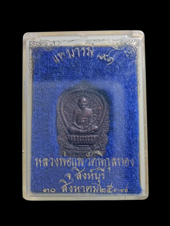 เหรียญนั่งพาน หลวงพ่อแพ วัดพิกุลทอง จ.สิงห์บุรี รุ่นแพบารมี 91 ปี 2537 กล่องเดิม