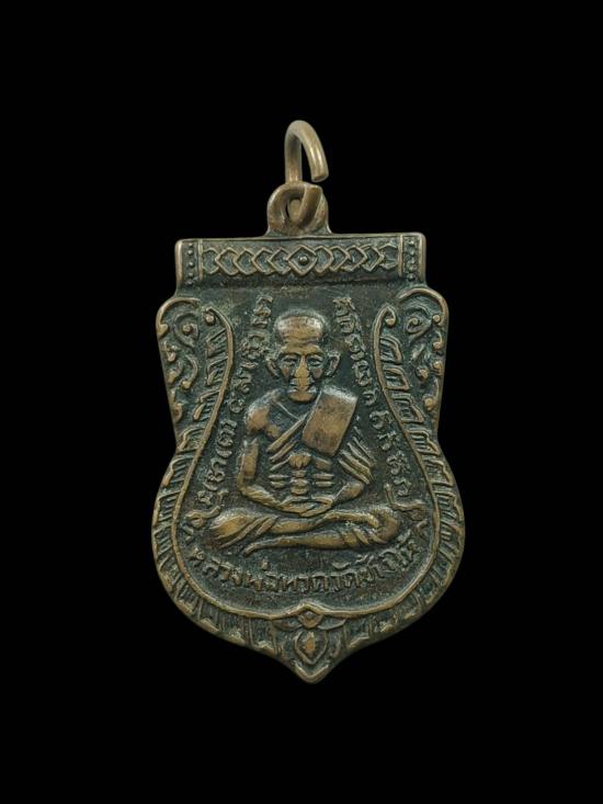เหรียญเสมา หลวงปู่ทวด วัดช้างให้ ออกวัดเอี่ยมวรนุช ปี พ.ศ 2506 เนื้อทองแดงรมดำบล็อควงเดือน |