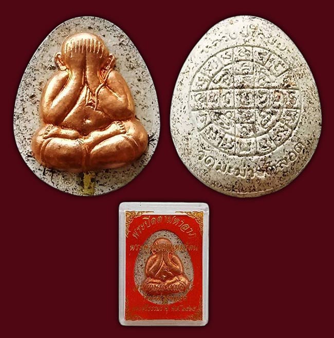 ปิดตาจัมโบ้ หลังยันต์ดวง เนื้อกาฝากรักยม หน้ากาทองแดงฝังตะกรุด 1 ดอก หลวงปู่เกษม วัดมะม่วงตลอด นครศรีฯ
