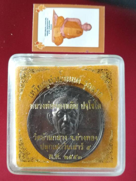 เหรียญทำน้ำมนต์ รุ่นแรก หลวงพ่อทองหยิบ วัดบ้านกลาง จ.อ่างทอง เสาร์ห้า ๒๕๕๓ หมายเลข ๑๗๒ พร้อมกล่อง+รูปแจกทาน |