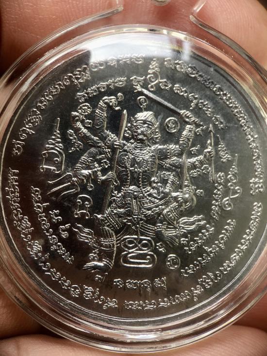 เหรียญหนุมานแปดกรหลังพระพุทธนิมิตร วัดซับลำใยหลวงปู่หมุนปลุก เสก ปี 2543 พิธีสมปราถนา เนื้อตะกั่ว หลังจารเต็ม ไม่ตอกเลขแจกในพิธี |