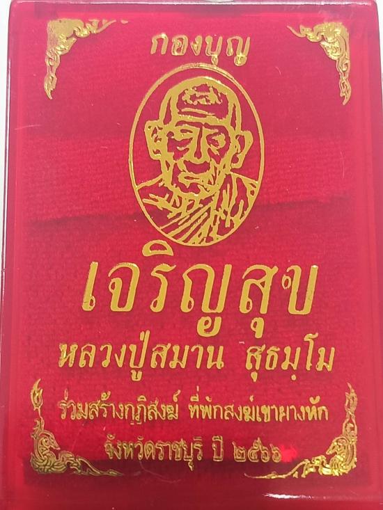 เหรียญ รุ่น เจริญสุข ลังกองบุญ หลวงปู่สมาน ที่พักสงฆ์เขายางหัก ราชบุรี (ศิษย์สายหลวงปู่สุด วัดกาหลง) ปี2566 เนื้อเงิน ลงยาพื้นแดง ลงยาจีวร หลังยันต์ลงยาแดง ตอกโค๊ตพิเศษ No.59 |