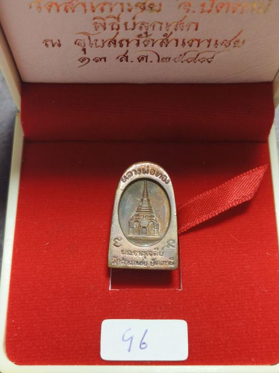 เหรียญหล่อหลวงพ่อทวดพิมพ์พระรอด  หลวงพ่อทอง วัดสำเภาเชย รุ่นพระธาตุเจดีย์ เนื้อนวโลหะ ปี 49  เลขโค้ต96