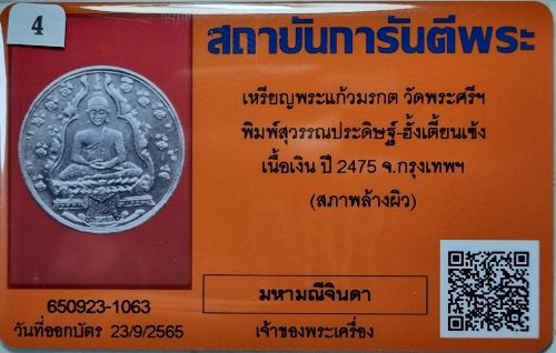 เหรียญพระแก้วมรกต ปี 2475 บล็อคสองชื่อ สุวรรณประดิษฐ์+ฮั้งเตี้ยนเซ้ง *เนื้อเงิน* สุดหายากทั้งบล็อคและเนื้อ + มาพร้อมบัตรรับรอง G-PRA เคาะเดียวแดงครับ