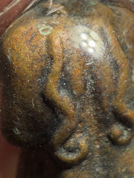 วัดใจ เคาะเดียวพระปิดตาเนื้อทองผสมพร้อมเลี่ยมทรงดอกบัวเก่าพระบ้านไม่ทราบที่เหมามา |