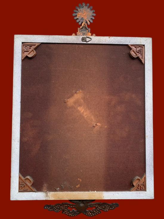 พื้นหลังจริงๆเป็นกำมะหยี่สีแดงครับ แต่เก่ามากๆ ตอนนี้ซีดจาง เพราะอากาศร้อนครับ