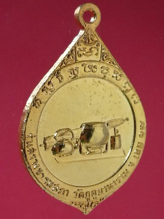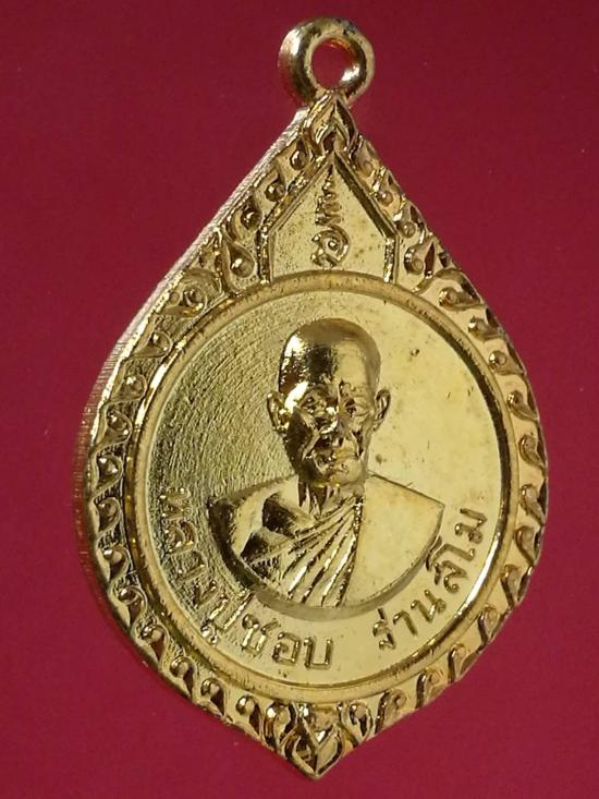 เหรียญหยดน้ำรูปเหมือนครึ่งองค์ หลวงปู่ชอบ ฐานสโม วัดป่าสัมมานุสรณ์ อ.วังสะพุง จ.เลย ปี ๒๕๑๗ กะไหล่ทอง