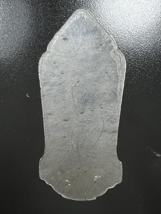 เนื้อดีบุกหลังเรียบมีจารอักษรสวรรค์ท่านพอ โค๊ด ก และเลข ๙ กล่องเดิม