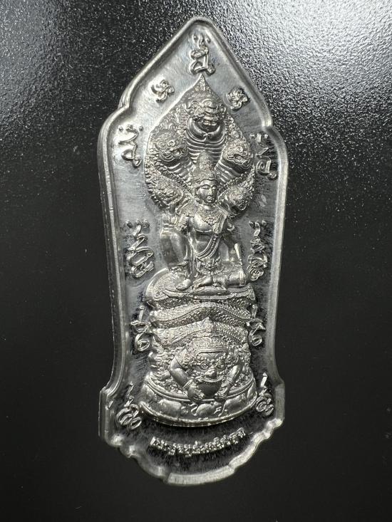 เหรียญเบญจทรัพย์มงคลพลิกดวงเก้า ดีบุกหลังเรียบ มีจาร วิหารองค์พ่อจตุคามรามเทพนราธิวาส