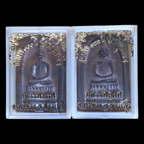 หลวงพ่อแพ พระพิธีปลุกเสกใหญ่ พระสมเด็จหล่อโบราณ รุ่น 100 ปีวัดพิกุลทอง เนื้อนวโลหะ แพ็คคู่ สวยมาก กล่องเดิม