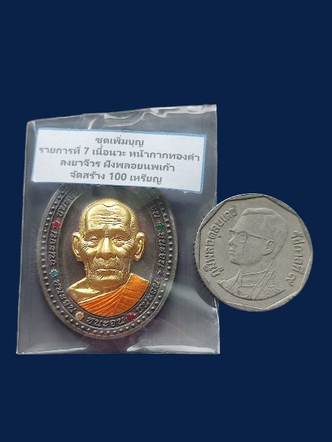 เหรียญชนะจนชุดเพิ่มบุญ หลวงปู่สมาน เนื้อนวะหน้ากากทองคำสวยใหญ่