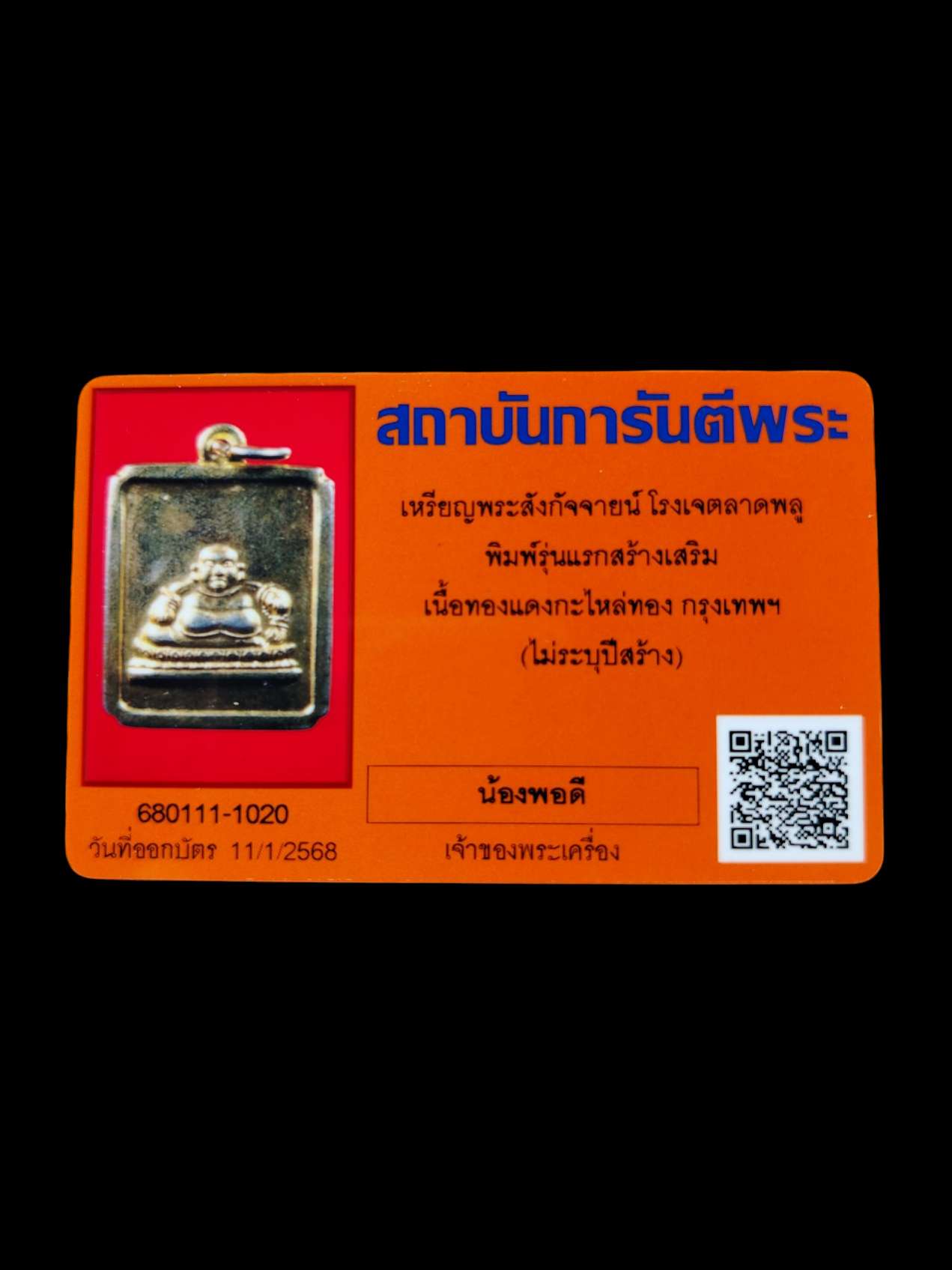 เหรียญพระสังกัจจายน์โรงเจตลาด พิมพ์ รุ่น แรกสร้างเสริม มา พร้อม บัตรรับรอง
