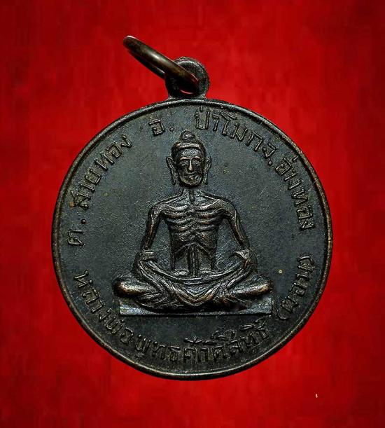 เหรียญรุ่นแรก หลวงพ่อพุทธศักดิ์สิทธิ์ (หลวงพ่อผอม) วัดพายทอง เนื้อทองแดง ปี2516 จ.อ่างทอง สวยเดิม