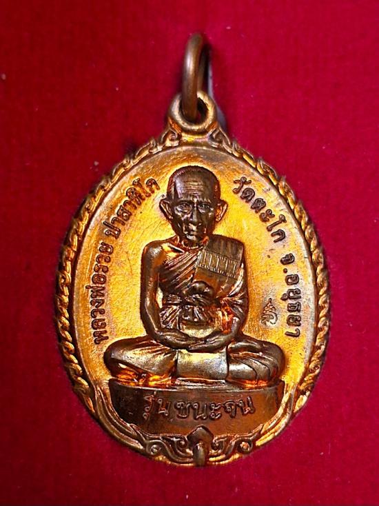 เหรียญหลวงพ่อรวย วัดตะโก รุ่นชนะจน ปี2556 เนื้อทองแดงผิวไฟ มีกล่องเดิม