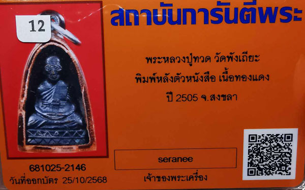 พระหลวงปู่ทวด วัดพังเถียะ พิมพ์หลังตัวหนังสือ เนื้อทองแดง ปี2505 จ.สงขลา + บัตรG-pra สภาพเดิมค่ะ พระสภาพตามรูปทุกประการค่ะ