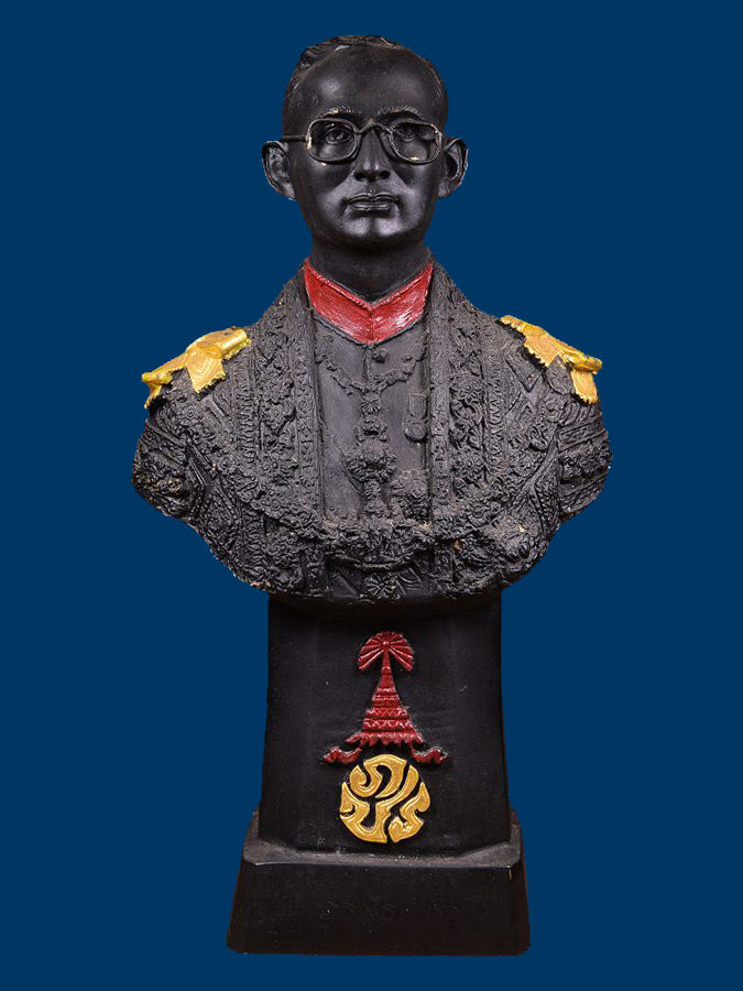 พระบรมรูปจำลองพระบาทสมเด็จพระเจ้าอยู่หัว รัชการที่ ๙ เนื้อโลหะ จัดสร้างโดยกรมทนารักษ์ ปี 2530 หมายเลข 0199