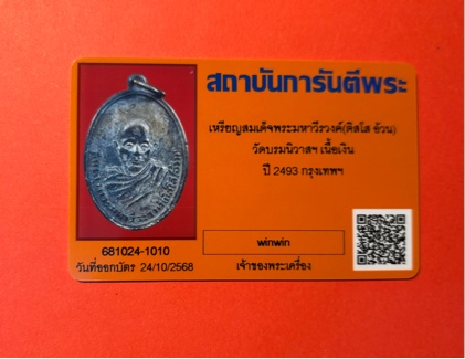 สุดยอดเหรียญพิธีสายกรรมฐาน เหรียญสมเด็จพระมหาวีรวงศ์ (อ้วน ติสโส) วัดบรมนิวาส กทม. ปี 2493 ห่วงเชื่อม เนื้อเงิน วาระดี พิธีใหญ่ จัดสร้างเพื่อสืบชะตา สมเด็จพระวีรวงศ์ (ติสโส อ้วน) ที่มีพระชนย์มายุ 6 รอบ 72ปี ซึ้งท่านเป็น พระป่าและท่านเกิดวันเสาร์ โดยมีเกจิ อาจารย์มากมายสายหลวงปู่มั่นปลุกเสก อาทิ หลวงพ่อลี วัดอโศกฯ (แม่งาน) หลวงปู่สิงห์ วัดป่าสาลวัน (แม่ทัพกองทัพธราม) อาจารย์ฝั้น วัดป่าอุดมสมพร หลวงปู่ขาว วัดถ้ำกลองเพล หลวงปู่แหวน วัดดอยแม่ปั้ง หลวงปู่หลุย วัดถ้ำผาบึ้ง หลวงปู่ตือ วัดอรัญญวิเวก