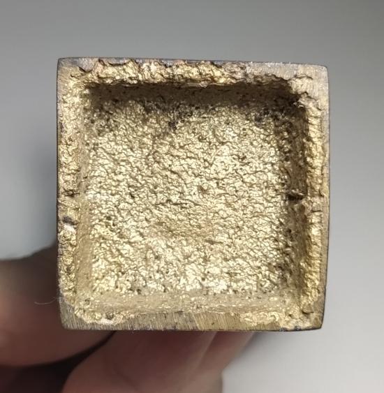 มุมฐานด้านหน้าขวาขององค์พระ มีรูเจาะตื้น ๆ ไว้สำหรับให้ไม้เท้าลงล็อคครับ