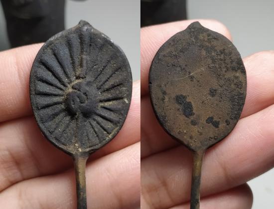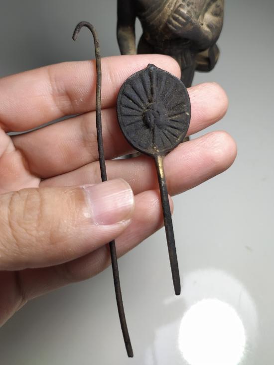พัดเป็นทองเหลือง ส่วนไม้เท้าเป็นเหล็ก
