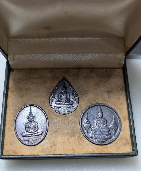 ชุดเหรียญพระแก้วมรกต 3 ฤดู วัดพระแก้ว ฉลองกรุง 200 ปี 2525 เนื้อทองแดงรมดำ กล่องเดิม |