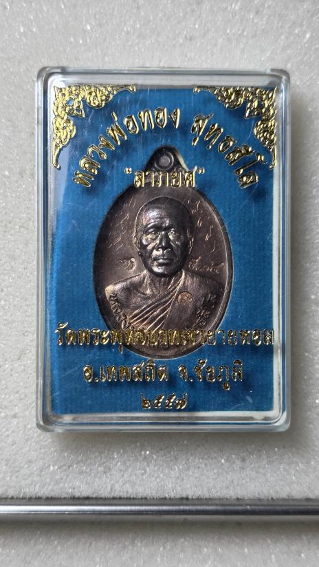 วัดใจเคาะแลกแดงเหรียญหลวงพ่อทอง วัดพระพุทธบาทเขายายหอม รุ่นลาภยศ มาพร้อมกล่องเดิมๆเลยครับ |