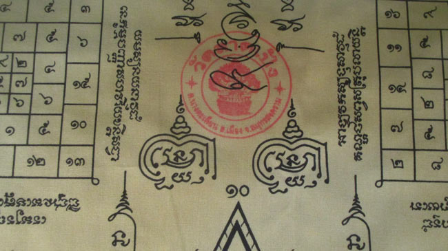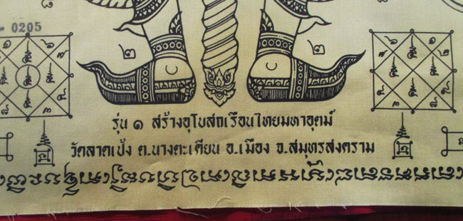 ผ้ายันต์ ท้าวเวสสุวรรณ รุ่น ๑ สร้างอุโบสถเรือนไทยมหาอุตม์ วัดลาดเป้ง ต.นางตะเคียน อ.เมือง จ.สมุทรสงคราม ผืนที่ 1 ครับ (สีดำ ครับ) |
