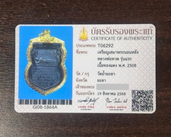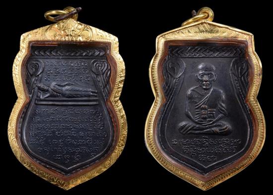 เหรียญเสมาพระนอนหลังหลวงพ่อทวด ปี 2508 ออกวัดหน้าถ้ำ ยะลา สวยมากครับผม ทันอาจารย์ทิมปลุกเสก พร้อมเลี่ยมทองคำอย่างดี หวงครับพระดำเดิมรับประกันแท้และตามกฎครับ