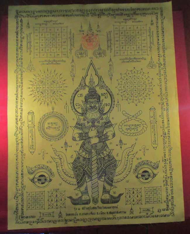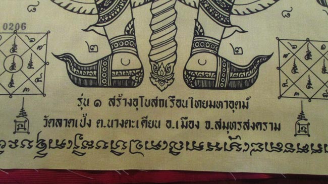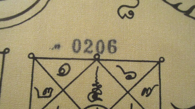 ผ้ายันต์ ท้าวเวสสุวรรณ รุ่น ๑ สร้างอุโบสถเรือนไทยมหาอุตม์ วัดลาดเป้ง ต.นางตะเคียน อ.เมือง จ.สมุทรสงคราม ผืนที่ 2 ครับ (สีดำ ครับ) |