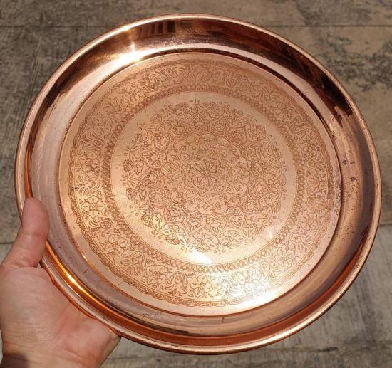 ***วัดใจ***ถาดบูชาเก่า แกะสลักเนื้อทองแดงแท้ ขนาด 12 นิ้ว มีลวดลายสลัก