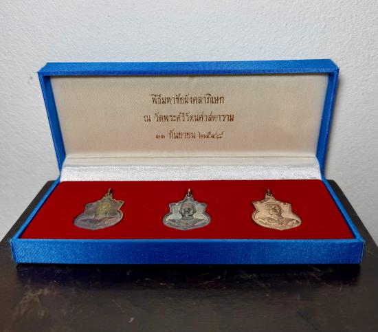 เหรียญสมเด็จพระนเรศวรมหาราช รุ่นสู้ หลังสก ปี 2548 เนื้อกะไหล่ 3 กษัตริย์ เนื้อเงิน เนื้อทองแดง พร้อมกล่องครับ
