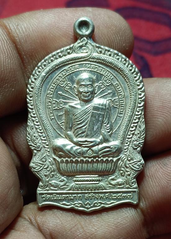 เหรียญนั่งพาน หลวงพ่อม่น วัดเนินตามาก ปี 37 เนื้อเงิน