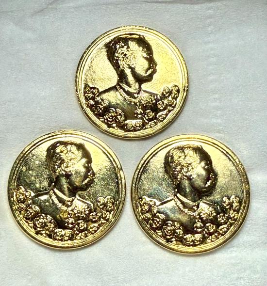เหรียญรัชกาลที่ ๕ วัดแหลมแค ชลบุรีปี 2536 เนื้อทองแดงกะไหล่ทองครับ |