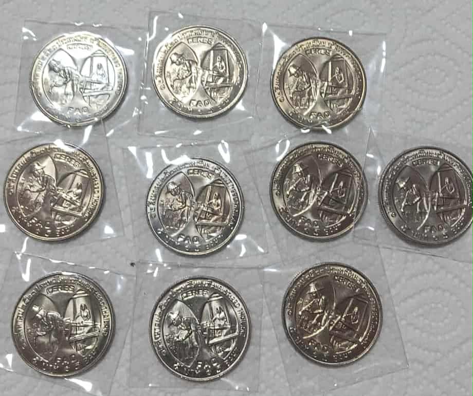 ถวายความอาลัย "พระบรมราชชนนีพระพันปีหลวง" เหรียญ 5 บาท พระราชินี FAO CERES 12 สิงหาคม พ.ศ.2523 สภาพไม่ผ่านการใช้งาน UNC สวยน้ำทอง จำนวน 10 เหรียญ ครับ