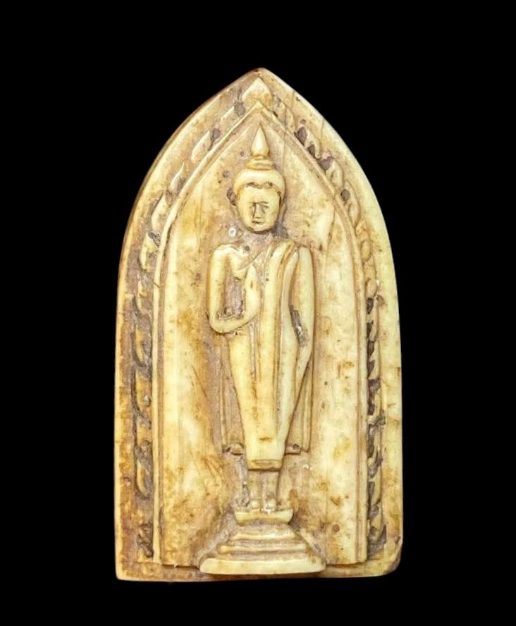 งาแกะพระพุทธประจำวันของหลวงพ่อมุ่ย วัดดอนไร่เ(วันจันทร์) ปางห้ามญาติ หน้าหวานๆนิยม มีความเก่าแก่และสภาพแห้งตามธรรมชาติ ขนาดกว้าง 2.2 x 4 cm
