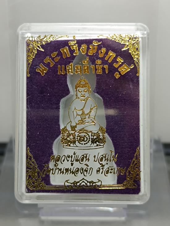 @@ พระกริ่งมังกรคู่ แสนล่ำซำ ปี2560 หลวงปู่แสน ปสนฺโน วัดบ้านหนองจิก จ.ศรีสะเกษ (ขนาดสูง 4.0 ซ.ม.) เนื้อกะไหล่เงินก้นทองแดง หมายเลข 499 พร้อมกล่องเดิมครับ
