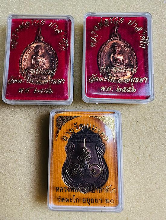 หลวงพ่อรวย ปาสาทิโก วัดตะโก เหรียญชนะจน เล็ก ปี56 เนื้อทองแดง +เหรียญอายุวัฒนมงคล ปี 60 พร้อมกล่องเดิม