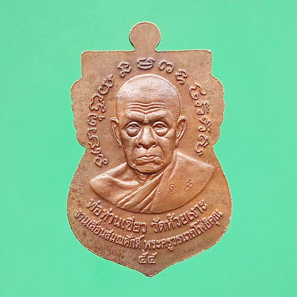 เหรียญเสมาหลวงพ่อทวด หลังพ่อท่านเขียว เนื้อทองแดงผิวไฟ หูตัน ตอก 2 โค้ด พ่อท่านเขียว วัดห้วยเงาะ จ.ปัตตานี รุ่นเลื่อนสมณศักดิ์ 55