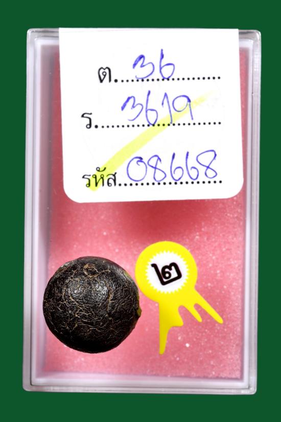 ลูกอมสายสิญญ์ ,หนังเสือ, พอกครั่งเหลือร้าย หลวงพ่อทองสุข วัดโตนดหลวง จะมีเครื่องรางของขลังประเภท ลูกอม และตะกรุด สักกี่สำนักในสยามประเทศ ที่ให้ผลทางแคล้วคลาด คงกระพัน และพุทธคุณโดดเด่นทางด้านเมตตามหานิยม จนสามารถรู้สึก และจับต้องทางภาษาได้อย่างเด่นชัด นะ โม พุท ธา ยะ นะเมตตา โมกรุณา พุทปราณี ธายินดี ยะเอ็นดู อะคือตัวกู อุคือคนทั้งหลาย อะจะทำอะไร กูได้อุมนุษย์ศรัทธา ด้วยนะโมพุทธายะ ต่อข้าพเจ้าด้วยเถิด อะระหังพุทโธ พุทธะสังมิ อิสวาสุ ลูกอมพอกครั้ง หลวงพ่อทองสุข แห่งวัดโตนดหลวง เป็นหนึ่งในของมงคลที่คำโบราณ เขียนบอกเอาไว้ว่า ถ้าชาตินี้ยังไม่ตาย ต้องหามาคู่กายให้ได้ ยุคต้นสุดๆ ตัวจริงเสียงจริง โครตมันส์ ลูกอมลูกนี้แท้ถึงยุคต้นๆของลักษณะแบบนี้แหละที่เหล่าบรรดาเซียนๆมักชอบเรียกว่า แท้ตาเปล่า แท้ร้อยตาลูกอมของหลวงพ่อทองสุข วัดโตนดหลวง จังหวัดเพชรบุรี โดยส่วนใหญ่ด้านในจะเป็นด้ายสายสิญจน์เสกพันขมวดปมแล้วพอกปั้นด้วยครั่งพุทรา และหนังเสือด้วย ทุกๆลูกจะมีเชือกด้ายสายสิญจน์เสกอยู่ด้านในทุกๆลูกเสมอ แต่มีบางลูกที่พิเศษไปกว่านั้นก็คือ พบหนังเสือชิ้นเล็กๆ (หนังหน้าผากเสือ) หุ้มอยู่ด้านในก่อนที่จะนำมาพอกครั่ง และสำหรับลูกอมพอกครั่งพุทราเม็ดนี้ มาพร้อมกับความสวยมันส์สะใจ ดูง่ายแบบสุดๆ ที่สำคัญคือสวยสมบูรณ์ มีสภาพ ๑๐๐% เพราะเป็น ของเก่าเก็บ ยุคต้นไม่ได้เอาออกมาพก ไม่ได้เอาออกมาใช้ จึงมีสภาพดังที่เห็น เครื่องรางของขลัง โดยส่วนมากนั้นมักเป็นวัตถุมงคลยุคต้น ยุคแรก ของท่านอาจารย์ผู้สร้างนั้นๆ ดังนั้นการสร้างเครื่องรางทุกๆขั้นตอนต้องถูกต้องตามตำรา .....หลวงพ่อทองสุข วัดโตนดหลวง ท่านเป็นศิษย์หลวงพ่อตาด วัดบางวันทอง ผู้เป็นอาจารย์หลวงพ่อคง วัดบางกะพ้อม ท่านจึงเป็นศิษย์อาจารย์เดียวกันกับหลวงพ่อคง.. หลวงพ่อทองสุขเป็นพระอาจารย์หลวงพ่ออุ้น วัดตาลกง เกจิอาจารย์ชื่อดังเมืองเพชรบุรี "ครั่งเหลือร้าย สุดยอด ๙ เครื่องราง-ของขลัง ทรงคุณค่า เป็นโคลงคำกลอนดังนี้ .....แมลงวันไม่ได้กินเลือด..ลูกอมพอกครั่ง วัดโตนดหลวง นับเป็นหนึ่งในเครื่องรางวัตถุมงคลยอดนิยม เป็นเลิศในความคงกระพัน ประสบการณ์เป็นที่เล่าขานมาทุกวันนี้ คนเมืองเพชรบุรีเชื่อว่าแมลงวันไม่ได้กินเลือด สรรพคุณครั่ง....ที่พอกนี้ได้ผสมว่านสมุนไพร มีสรรพคุณในทางถอนพิษร้ายต่างๆ รวมทั้งผสมผงพระจันทร์ครึ่งซีก พุทธคุณสุดยอดเสน่ห์เมตตามหานิยมลึกล้ำ แรงยิ่งกว่าผงอิทธิเจทั่วไปหลายเท่า ทำได้ยากสุดๆ ต่อมาหลวงพ่ออุ้น วัดตาลกง ได้สืบทอดวิชานี้...วิช