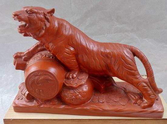 ชื่อพระเครื่อง ***วัดใจ***ผ้ายันต์จากศาลเจ้าพ่อเสือ (ฮู้ตั่วเหล่าเอี๊ย) กับ "เสือเหยียบเงิน"เนื้อดินเผา ฐานกว้าง 12 สูง 8.5 นิ้ว