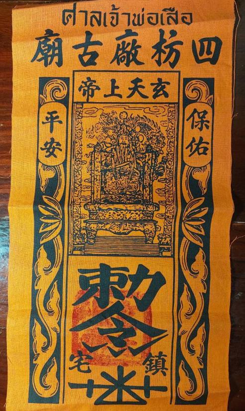 รายละเอียด ผ้ายันต์จากศาลเจ้าพ่อเสือ (ฮู้ตั่วเหล่าเอี๊ย)