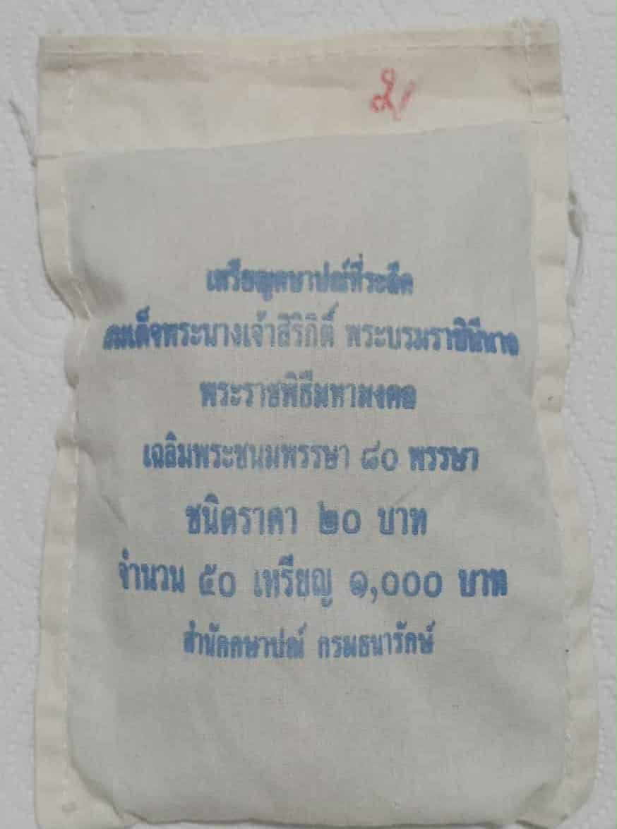 เหรียญ 20 บาท นิเกิล ที่ระลึกสมเด็จพระนางเจ้าสิริกิติ์ พระราชพิธีมหามงคลเฉลิมพระชนมพรรษา 80 พรรษา จำนวน 50 เหรียญ สภาพสวยพร้อมถุงเดิมครับ จำนวน 1 ถุง ครับ