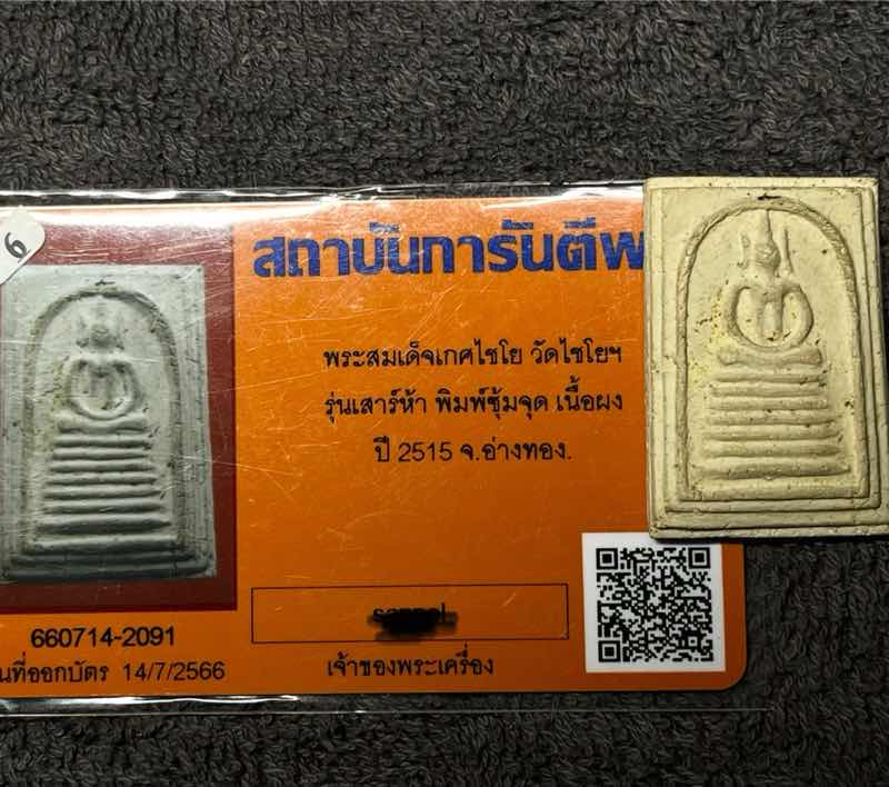 พระสมเด็จวัดเกศไชโย รุ่นเสาร์ห้า ปี 2515 พร้อมบัตรรับรองพระแท้จากสถาบัน |