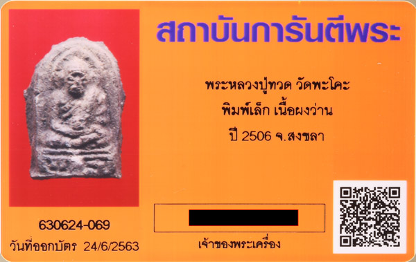 พระผงหลวงปู่ทวดรุ่นแรก วัดพะโคะ พิมพ์เล็ก ปี2506 สภาพสวยเดิม ใบหน้าติดชัดครับ
