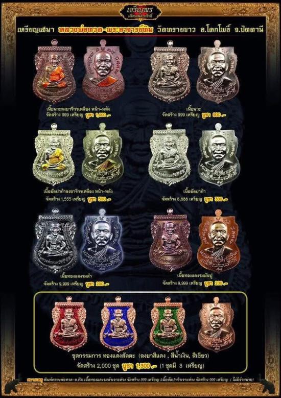 เหรียญเลื่อนสมณศักดิ์ ลป.ทวด หลัง อ.ทิม วัดทรายขาว ปี 59 องค์จริงสวยกว่าในรูปมาก (ไม่มีกล่อง) 100 แดงครับ |