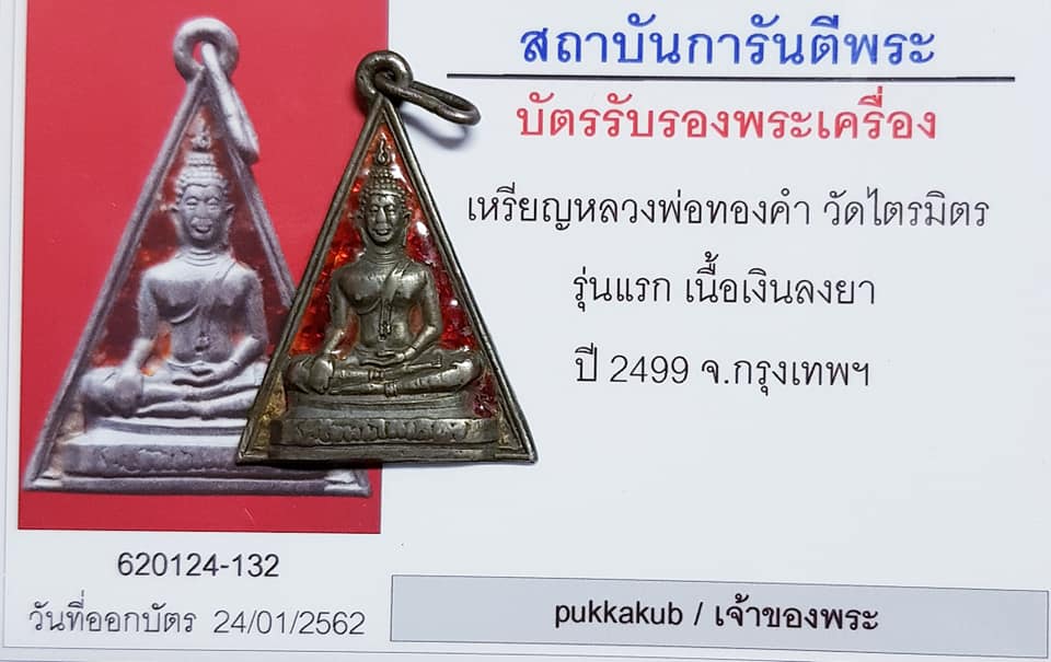 เหรียญหลวงพ่อทองคำ วัดไตรมิตร รุ่นแรก เนื้อเงินลงยา ปี 2499 + บัตรรับรอง G-PRA *ของแท้ๆหายากมาก* เคาะเดียวขั้นต่ำครับ