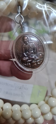 เหรียญไตรสรณคมน์ เนื้อทองแดง หลวงตาม้า วัดถ้ำเมืองนะ พร้อมรอยจารหลวงตาม้า เลี่ยมจากวัดพร้อมประคำ