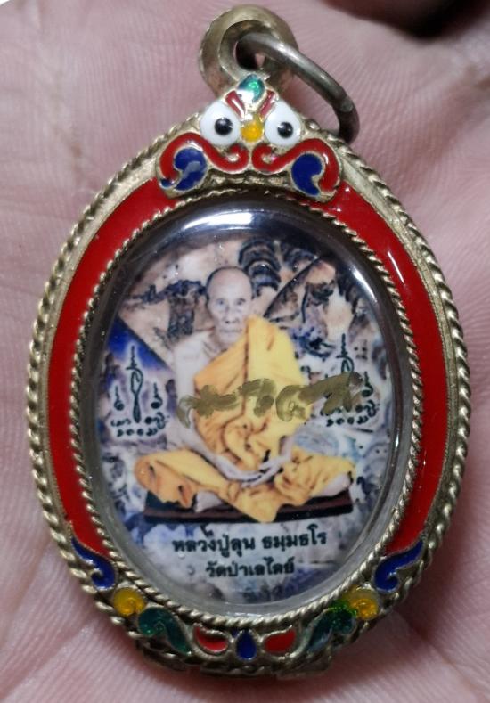 ล็อกเก็ตรูปไข่รุ่นแรก หลังตะกรุดทองแดง หลวงปู่ลุน วัดป่าเรไลย์ จ.มหาสารคาม |